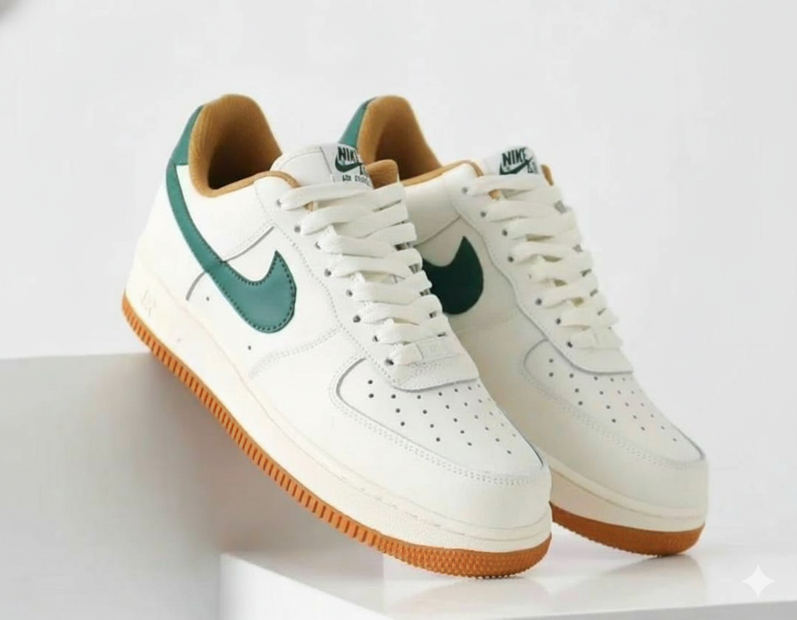 Titre : Nike Air Force 1 Low Rétro - Élégance Crème, Verte et Gomme